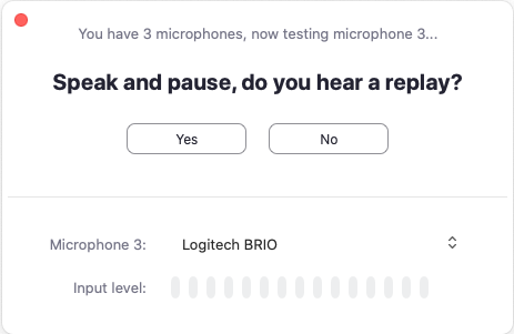 If you don't hear an audio replay, use the drop-down menu or click No to switch microphones until you hear the reply. Click Yes when you hear the replay.
